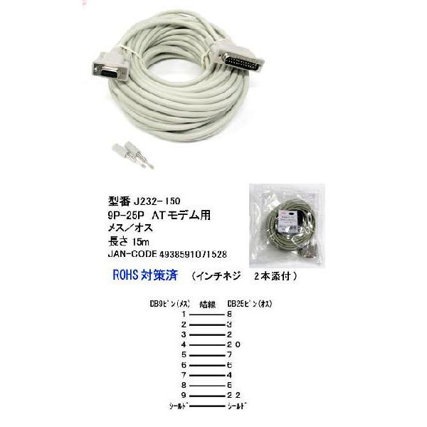 【カモン(COMON)製】RS-232Cケーブル(DB9Pin:メス)⇔(DB25Pin:オス)/15m【J232-150】