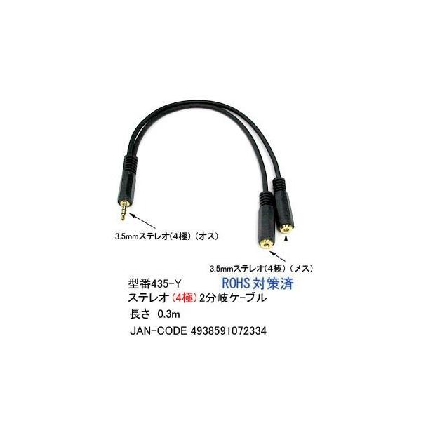4極3.5mm分岐ケーブル 0.2m comon 435-Y