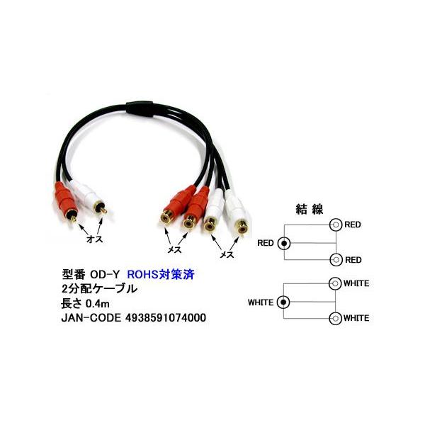 オーディオ分配ケーブル(ピンプラグ:赤/白/オス⇔メスx2) /OFC/0.4m(AV-OD-Y)