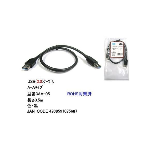 - USB3.0ハードディスクケース等接続用ケーブル USB3.0Aタイプ(オス) - USB3.0Aタイプ(オス) USB3.0対応の外付けハードディスクケースなどの周辺機器接続用 短めのケーブルで、パソコン本体の近くに機器設置時スッキリ配線できて便利。 メール便対応 メール便での対応個数(目安) 5個 メーカー名 COMON 機種名 3AA-05 端子 USB3.0 A(メス) USB3.0 A(オス) 長さ 50cm 規格 USB3.0 入数 1本 ROHS ROHS対応 包装 簡易包装にてお届けいたします。 生産国 中国製 USB3.0ケーブル USB3.0 Aタイプ(オス)-USB3.0 Aタイプ(オス) COMON(カモン)社製品カタログはこちら USB3.0のケーブル・アダプタはこちら その他のUSBアダプタ・ケーブル一覧はこちら USBには数種類の規格がございますのでご購入時にはお使いの端子を確認した上で ご購入お願いいたします。 また、機器によりましては相性などにより正常に動作しない場合もございます。