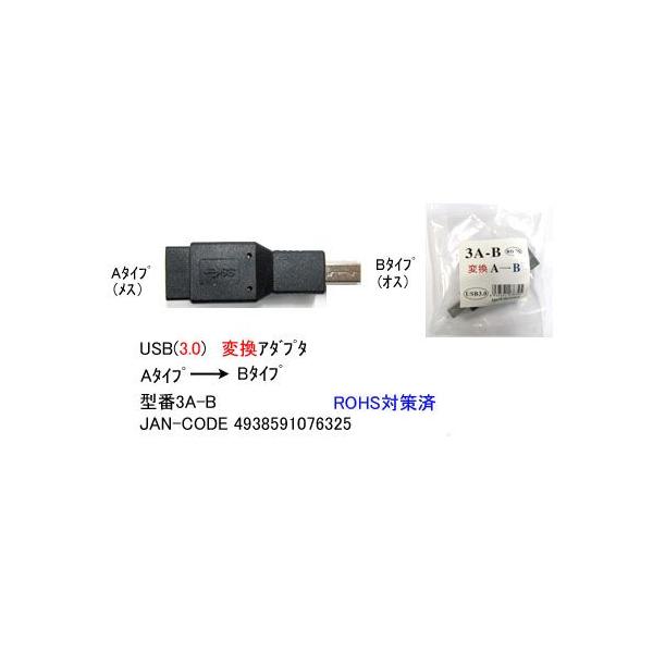 3A-B USB3.0 変換アダプター A/メス 凸B/オス