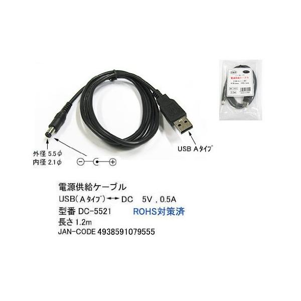 【COMON】USB(A) - DC電源供給ケーブル(外径5.5mm/内径2.1mm) 長さ1.2m 【DC-5521】