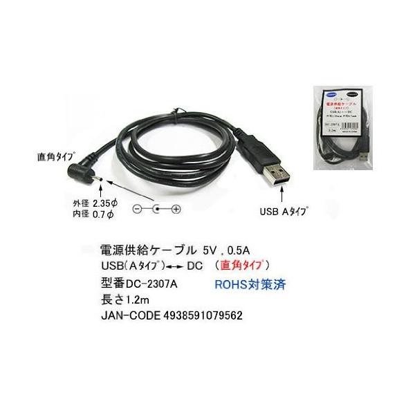 【COMON】USB(A) - DC電源供給ケーブル L型(外径2.35mm/内径0.7mm) 長さ1.2m 【DC-2307A】