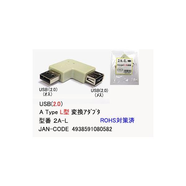 USB2.0 L型 変換アダプタ タイプA オス ⇔ タイプA メス UA-2A-L