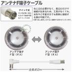 - 2K 4K 8K対応 地上デジタル・BSデジタル・CSデジタル・CATV等デジタル放送対応・テレビ・レコーダー等機器接続対応のアンテナケーブル 近くのアンテナ壁コンセントとテレビや録画機器、ブースターなどとの接続に便利な長さ 片側の端子がL型になっており機器接続時にケーブル後方の出っ張りを抑えすっきり配線が可能です。 女性でも簡単に接続可能な差し込むだけで配線完了のクイックプラグ式 L型端子でケーブルが出っ張らず、掃除や移動の際の接触等による思わぬトラブルを避ける事が出来ます。 内部ケーブル材にはOFC高品質無酸素銅を採用・シールド・網組シールドもしっかり入ったノイズに強いケーブル 端子にはニッケルメッキ処理済みで強度があり腐食に強くノイズの発生も防ぎます。 ※デジタル放送はアンテナケーブルなどが劣化すると一部のチャンネルが映らない等のトラブルが発生いたします。こんな時は一度アンテナケーブルのお取替えをお勧めいいたします。 ※クイック端子側が機器により抜けやすい場合がございます。万一しっかり固定できないと感じた場合はペンチなどで若干かしめてご利用ください。 ※電波状況が良くない場所等では、電波の減衰によりテレビが映らなくなる場合がございます。このような症状の場合は家庭用テレビブースターをアンテナと受像機の間に取り付けてください。 商品説明 Fタイプ(オス)クイック式 直角 Fタイプ(オス)クイック式 長さ:約2m OFC(高純度無酸素銅)ワイヤー使用 S4C-FB 75Ω 端子:ニッケルメッキ ケーブル色:白 内容量 1本入り RoHS ROHS対応 【長さ違いで8種類展開】 【アンテナケーブルの一覧】 【アンテナ分配器の一覧】 【F端子アダプタの一覧】 端子には数種類の規格がございますのでご購入時にはお使いの製品・サイズ・規格等を確認した上でご購入お願いいたします。 また、機器によりましては相性などにより正常に動作しない場合もございます。 メーカー様の都合にて形状や長さ等が画像と異なる場合がございますがご了承お願いいたします。 不良品以外の返品・交換はお断りさせて頂いております。 保証期間・商品発送後2カ月とさせて頂きます。