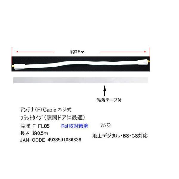 - ドアやサッシにフィルムタイプアンテナケーブル ●フイルムタイプアンテナケーブル ●ケーブル色:白色 ●75Ω ●余裕の長さ50cm 商品名 F-FL05 商品説明 アンテナF端子(メス)x2 設置用両面テープ付き 長さ:約50cm 75Ω 内容量 1個 RoHS ROHS対応 梱包 簡易包装にてお届けいたします。 ご購入時にはお使いの製品・サイズ・規格等を確認した上でご購入お願いいたします。 また、機器によりましては相性などにより正常に動作しない場合もございます。 メーカー様の都合にて形状や長さ等が画像と異なる場合がございますがご了承お願いいたします。 不良品以外の返品・交換はお断りさせて頂いております。 保証期間・商品発送後2カ月とさせて頂きます。 ・パソコン用配送方法変更のしかたはこちらから・