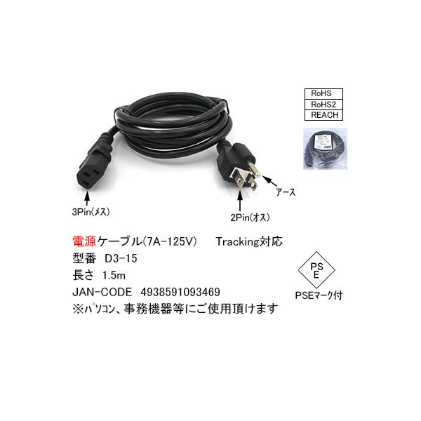 D3-15 ATX用AC電源ケーブル 3P-3P 1.5m