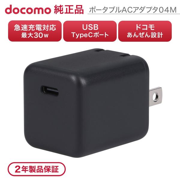 ドコモ純正 ポータブルACアダプタ04M ブラック 最大30W Type C ポート 急速充電 たためるプラグ 軽量 異常検知機能 2年保証 iPhone Android