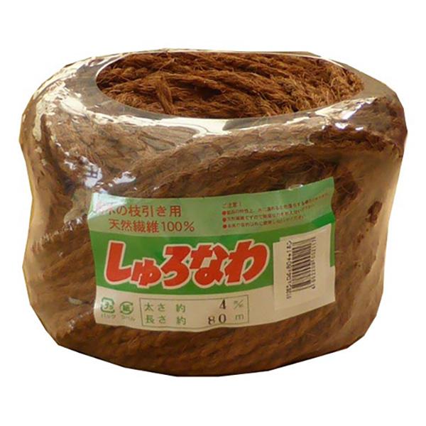 - エルモの一覧はこちら自然にマッチした風合いを大切にしたシュロ縄です。【用途】大型樹木の枝引きや竹垣の結束、工芸品の装飾。【機能】天然パーム繊維ですので樹木の生長と共に朽ち、自然に戻ります。竹垣の結束では、環境に合わせて竹垣の劣化と共に縄も劣化しますので違和感を与えません。業務用サイズです。【仕様】●色:茶。●太さ:約4mm。●長さ:約80m。【材質】●パーム。【注意事項】当製品は天然素材の特性上、個体によって寸法に若干の誤差がございますので、予めご了承ください。【商品サイズ】縦(mm) 140横(mm) 140高さ(mm) 100【商品重量】重量(g) 400JANCD:4952209002117【銀行振込・コンビニ決済】等前払い決済予定のお客様へ当商品は弊社在庫品ではなく、メーカー取寄せ品でございます。在庫確認後に注文確認を行い、お支払いのお願いを送信させて頂きます。休業日、14:00以降のご注文の場合は翌営業日に上記手続きを行います。お時間が掛かる場合がございます。