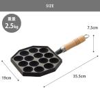 岩鋳 たこ焼き 14穴 木柄付き 直火 IH対応 南部鉄器 たこ焼き器 ガス火 ガスコンロ タコ焼き フライパン 鋳鉄 日本製