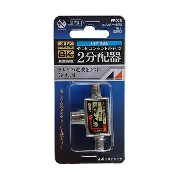 日本アンテナ FPD2E 4K8K放送対応 テレビコンセント差込型2分配器 片電通タイプ