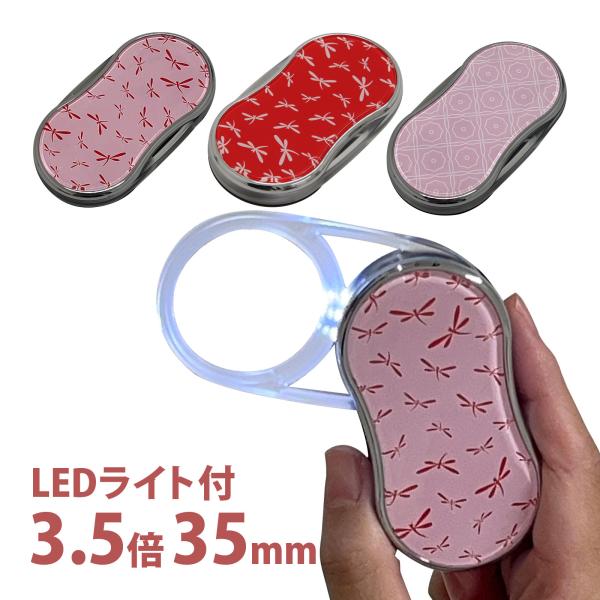 ルーペ LEDライト 付き スイングルーペ 3.5倍 35mm 虫眼鏡 拡大鏡 赤とんぼ 白とんぼ 花格子 ピンク レッド 赤 トンボ 蜻蛉 ポケット