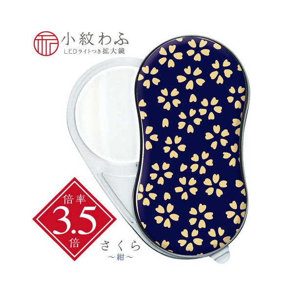 共栄プラスチック LEDライトつき拡大鏡 小紋わふ さくら(紺)