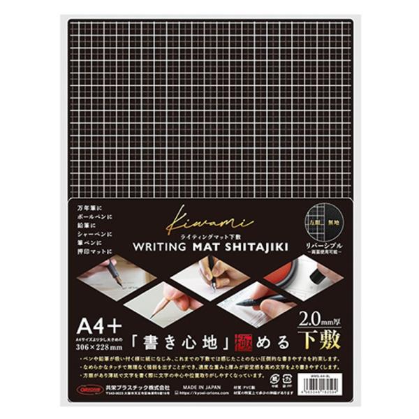 - ★KIWAMI(極)シリーズ ライティングマット(下敷)*A4判より大きめのサイズです■メーカー:共栄プラスチック(orions)■品番:WMS-A4-BL■対応サイズ:A4大■商品サイズ:縦306×横228×厚2mm■色:黒■表面のみ方眼印字あり■材質:PVC■販売単位:1枚