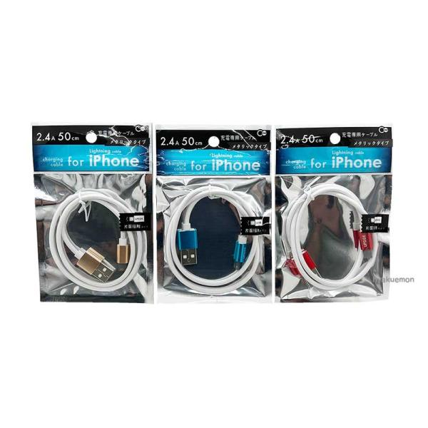 - iPhone用の充電ケーブルです。iPhone等ライトニングコネクタに対応した充電専用USBケーブルです。片面接触です。iPhone等の充電にお使いください。※充電専用です※2.4A出力以上の機器では使用できません※すべての状況において動作を保証するものではございません※Apple.incの純正品・ライセンス商品ではございません※色の指定はできません●サイズ(約)・ケーブル長:500mm●色・メタリックカラー●材質・コネクタ部:ナイロン、鉄、アルミニウム合金 ケーブル部:ポリ塩化ビニル、銅●用途・充電用ケーブル スマホ スマートフォン iPhone●キーワード・じゅうでん けーぶる すまほ すまーとふぉん●品名・iPhone用充電ケーブル50cmメタリック カラー●品番・★1789●JAN・4965534178938●メーカー名・山田化学(株)●管理単位・12個/300個●入数・1本