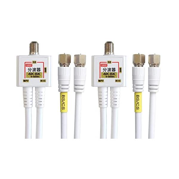 アンテナ分波器 4Cケーブル一体型 0.2m ニッケルメッキ (4K8K / 地デジ/BS CS/CATV デジタル放送対応) ホワイト 2個入