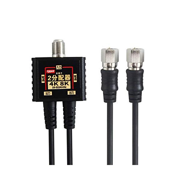F-Factory 分配器 テレビアンテナ2分配器 2k 4K 8K 地上デジタル BS CS CATV 放送対応 2Cケーブル 一体型 全端子