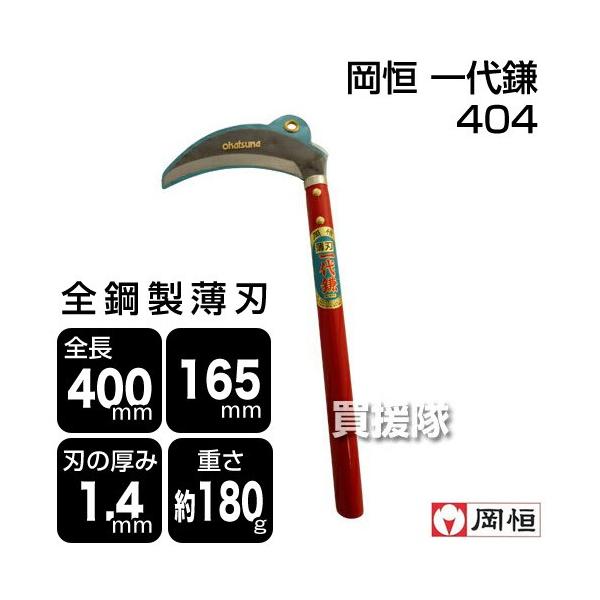 - ・使用後は、錆を防ぐため水分と樹液を拭き取り油をひいてください。 やわらかい草用の全鋼製薄刃鎌です。 岡恒 一代鎌 NO.404 4968779404008 草刈鎌。 ■特徴 ・草刈専用鎌です。 ・枝打ちはできません。 ・刃の厚さは1.4ミリの薄刃設計です。 ■仕様 ・全長:400mm。 ・重量:165g。 ・刃長:165mm。 ・刃厚:1.4mm。 ・寸法 : 170×25×400mm ・重量 : 0.165kg ・パッケージ寸法 : 180×30×400mm ・パッケージ重量 : 180g ■材質 ・刃:高級刃物鋼。 ・柄:ほう。 ※改良により予告なく形状や仕様が変更になる場合があります。ご了承ください。