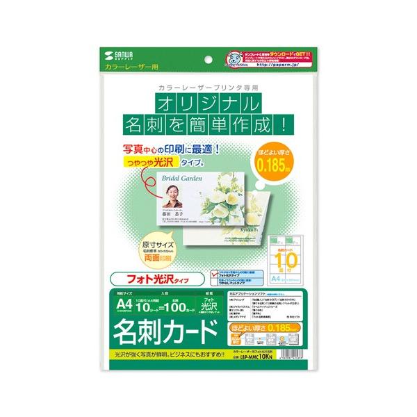 サンワサプライ カラーレーザー用フォト光沢名刺 10シート、100カード LBP-MMC10KN