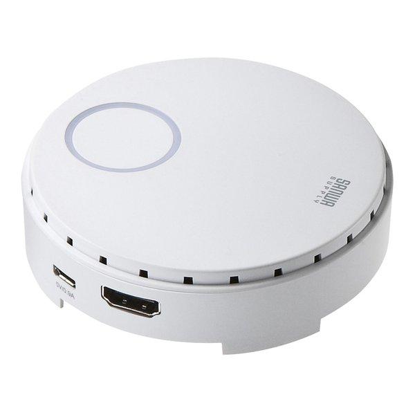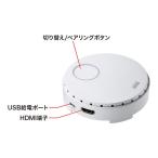 - 送料規定・納期はこちらでご確認下さい。ご注文処理の状況によりキャンセルや、ご注文内容修正へご対応出来ない場合がございます。 ワイヤレスHDMIエクステンダーVGA-EXWHD6に追加・増設可能なワイヤレスエクステンダー送信機。【主な特長】●ワイヤレスHDMIエクステンダー(VGA-EXWHD6)に追加・増設できる送信機(単体)です。●簡単なペアリング操作で既存のVGA-EXWHD6環境に追加・増設が可能です。複数のHDMI機器をボタン1つで切り替えて次々にワイヤレス出力させることが可能です。●5V/900mAのUSB給電で動作するためノートパソコンやタブレットなどを使用した会議システム・プレゼンテーション環境に最適です。※USB3.0ポートからの電力供給を推奨します。USB2.0ポートからの給電では機器により充分な電力が供給されないことがあります。●高画質なHDMI画像信号と同時に高音質な音声信号もワイヤレスで延長できます。●HDCP(High-bandwidth Digital Content Protection)対応製品です。※ディスプレイ、出力機器もHDCPに対応している必要があります。●日本国内で使用するための技術基準適合証明(TELEC認証)取得済みです。<ご注意>※本製品は送信機単体商品です。本製品だけではHDMI信号をワイヤレスで送信することはできません。サンワサプライ製ワイヤレスHDMIエクステンダー(VGA-EXWHD6)と合わせてご使用ください。※隣接する部屋同士で本製品を使用していた場合、電波が干渉する距離範囲内の場合は正常に動作しないことがあります。その際はいずれかの製品のご使用を停止してください。※すべての機器での動作を保障するものではありません。【製品仕様】■対応表示解像度:1920×1080、1680×1050、1440×1050、1440×900、1360×768、1280×768、1280×720、1184×666、1024×768、960×600、800×600 ■伝送距離:最大15m(障害物なし)※使用環境により異なります。