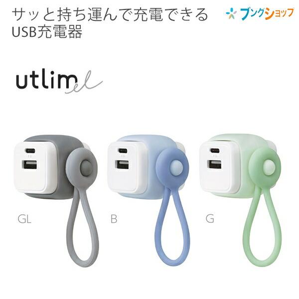 ソニック USB充電器 USB-A&C ケーブルリング付 UL-6943 グレーGL/ブルーB/グリーンG