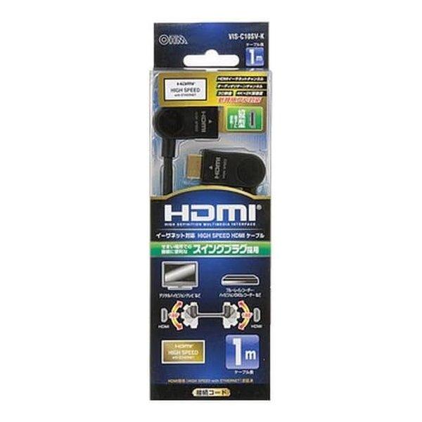 OHM オーム電機 HDMIケーブル 3D映像対応 スイング縦型 1m 黒 VIS-C10SV-K(2256330)