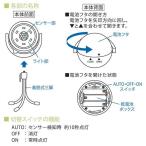 - ■屋外でもご使用いただける防噴流型■乾電池式で配線不要、電源のとれない場所や配線ができない場所におすすめ■常時点灯モード付き
