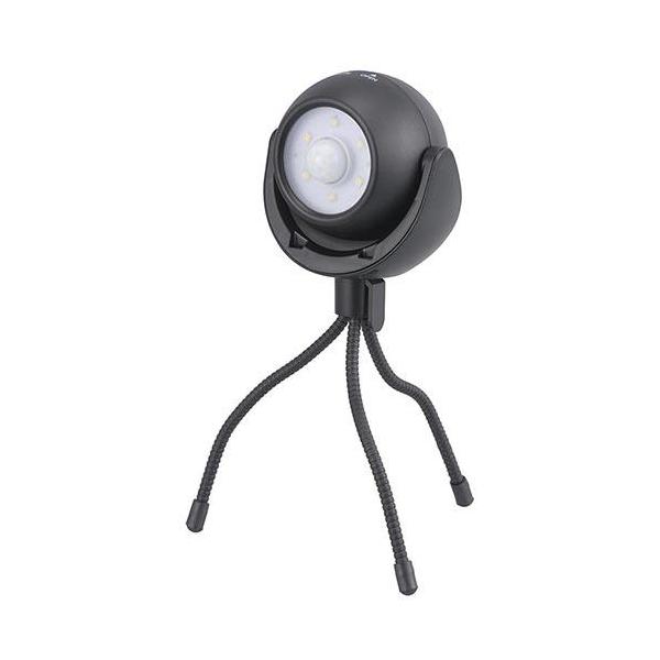 - 【 特 長 】 ● 明暗+人感センサー付きで、周囲が暗くなり人を感知すると点灯、離れてしばらくすると自動消灯 ● 屋外でもご使用いただける防噴流形(IPX5) ● 乾電池式で配線不要、電源のとれない場所や配線ができない場所におすすめです ● 常時点灯モード付き ● 着脱式三脚付き ● 本体カラーはブラック 【 仕 様 】 ■ 光源:LED×6(交換不可)/昼白色 ■ 全光束:約100ルーメン ■ 人感センサー感知範囲:約5m 左右約90° 上下約90° ■ 点灯保持時間:約10秒 ■ スイッチ切替機能:AUTO/OFF/ON ■ 電源:単3形乾電池×3本(乾電池別売) ■ 乾電池の寿命:AUTO…1日10回点灯させた場合、約7か月使えます、ON…連続点灯約20時間(アルカリ乾電池使用時の目安) ■ 外形寸法:本体…(約)幅95×高さ97×奥行83mm、三脚…(約)幅21×高さ165×奥行23mm ■ 質量:本体 約140g(乾電池除く)、三脚 約27g ■ 防水性能:IPX5(防噴流形…あらゆる方向からの噴流水による有害な影響がない保護レベル ※JIS C 0920:2003による) ■ 付属品:ミニ三脚
