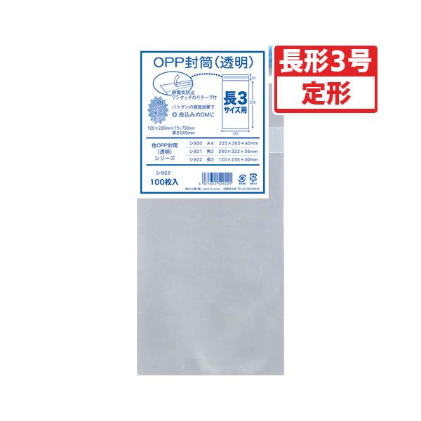 - ●規格:長3判用●外寸:縦235×横120mm●厚0.05mm●材質:OPPフィルム●接着テープ付