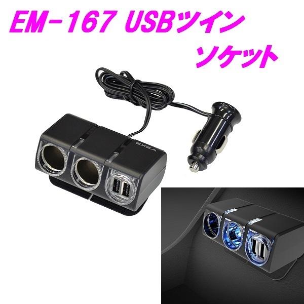 星光産業 EM-167 USBツインソケット EM167【お取寄せ品】【カー用品 USB 2連ソケット リバーシブルUSB 両面テープ】