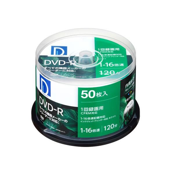 - 【商品解説】●優れた記録・再生・保存特性を実現する高性能記録膜を採用。●ハードコート層が、大切な映像をキズ・ホコリ・汚れから守る。●内周まできれいに印刷ができるホワイトレーベル採用。●インデックスカード付●録画時間の目安 120分(標準モード)●タイプ:1回録画用●記憶容量:片面4.7GB●記憶速度:1〜16倍速【スペック】●型式:DR120DP.50SP(DR120DP.50SP)●JANコード:4975193017028入数:50枚記録容量:4.7GB記録回数:1回録画用記録時間:120分(標準モード)対応倍速:1〜16倍速ケースタイプ:スピンドルレーベル対応:インクジェットプリンター対応インデックスカード:あり仕様1:内周まできれいな印刷ができる「ホワイトレーベル」この商品は宅配便でお届けする商品です出荷可能日から最短日時でお届けします。※出荷完了次第メールをお送りします。配送サービス提供エリアを調べることができます「エリア検索」をクリックして、表示された画面にお届け先の郵便番号7桁を入力してください。ご購入可能エリア検索お買い上げ合計3,980円以上で送料無料となります。※3,980円未満の場合は、一律550円(税込)となります。●出荷可能日から最短日時でお届けします。(日時指定は出来ません。) ※お届け時に不在だった場合は、「ご不在連絡票」が投函されます。 「ご不在連絡票」に記載された宅配業者の連絡先へ、再配達のご依頼をお願いいたします。●お届けは玄関先までとなります。●宅配便でお届けする商品をご購入の場合、不用品リサイクル回収はお受けしておりません。●全て揃い次第の出荷となりますので、2種類以上、または2個以上でのご注文の場合、出荷が遅れる場合があります。詳細はこちら■商品のお届けについて商品の到着日については、出荷完了メール内のリンク(宅配業者お荷物お問い合わせサービス)にてご確認ください。詳しいお届け目安を確認する1度の注文で複数の配送先にお届けすることは出来ません。※注文時に「複数の送付先に送る」で2箇所以上への配送先を設定した場合、すべてキャンセルとさせていただきます。