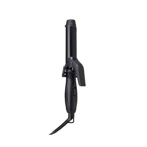 - テスコム TM122A-K カールアイロン コテ 25mm 海外対応 190度 ナノセラミックコーティングブラック 発売日:2025年10月9日●コンパクトでも実力派!最高温度190度で本格スタイリングができるミニカールアイロンです。ナノセラミックコーティングで摩擦ダメージを軽減しながら美しいカールをキープし、前髪や顔周りの繊細なスタイリングも思いのまま。海外対応で旅行にも便利です。●最高温度190度で、コンパクトでも本格的なスタイリングができます。●しっかりしたカールができる25mm径。ショートヘア〜ボブの方におすすめです。前髪や顔周り、おくれ毛のセットにも向いています。●すべりやすさ32%UP!粒子が細かい「ナノセラミック」を配合したコーティングで、摩擦ダメージに配慮した、ひっかかりのないスムーズな髪すべりを実現します。 ※チタンコーティングの当社ヘアアイロンとの比較●旅行にも持って行きやすいコンパクトサイズ。かばんに入れてもかさばりません。●電源ONから約45秒で立ち上がるから、 忙しい朝でも快適にご利用いただけます。 ※最高温度設定時の100度到達時間●持ち物やインテリアに馴染む、上品なマット質感のブラック&グレージュの2色展開です。●電源コード根元のフック穴でS字フックなどに吊るして収納できます。場所を取らず、使いたい時にサッと取り出せます。●電源コードの根元部分が360度回転するので、ねじれにくく使いやすいです。●スタンド付きなので、机やドレッサーに安定して置けます。 【仕様】サイズ:幅約218mm×奥行約48mm×高さ約64mm質量:約235g(コード込み)消費電力:32W-35W電源方式:AC100V-240V 50Hz/60Hzスイッチ:電源スイッチ「ON - OFF」主材料:PC立ち上がり時間:約45秒(最高温度設定時の100度到達時間)コーティング:ナノセラミックコーティングアイロン径:約25mmラク抜きプラグ:×海外使用:○カラー:ブラックコード長:1.5m保証期間:1年間
