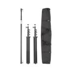 - 種別:その他撮影関連アクセサリー NOTE事務所や廊下・倉庫・ガレージなどを本格スタジオに早変わりさせる背景紙サポートとスタンドをセット。スタンド部はエアクッション付きで最大高は2.8m。背景紙サポート用のバーは背景紙の幅に合わせて素早く長さを決定できる3段の伸縮式で、最大2.9m幅まで対応。ロケにも便利なキャリングケースも付属しています。※野外での使用は強風・突風により、思わぬ事故につながりますのでお止めください。※ロール紙を設置する際は、自重による緩みを防ぐため、芯とペーパーをクリップ等で固定してください。また巾が広く、長い背景紙をご使用の場合は、芯を背景紙サポートに通さず、床に置いた状態での設置が便利です。スタンド部:●段数/4段 ●縮長/83cm ●伸長/280cm ●重量(単体)/約1.8kg ●エアクッション付背景紙サポート:●段数/3段 ●縮長/125cm ●ロール紙幅/最大2.9mまで共通:●キャリングバッグ付属 ●総重量/約5.3kg※ロール紙別売。目的に応じたロール紙や背景布を別途ご用意ください。