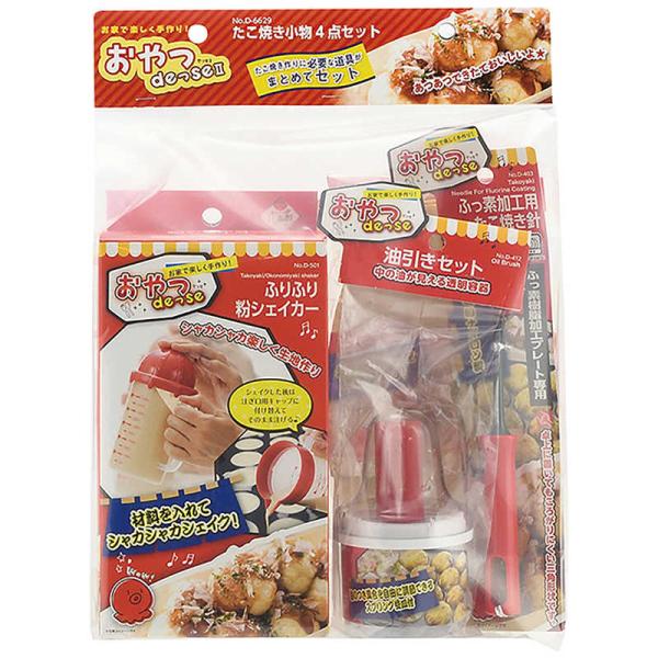 - 商品の仕様●たこ焼き作りの必需品をセットしました。●セット内容:粉シェーカー、油引きセット、たこ焼き針、盛皿10枚※商品画像はイメージです。複数掲載写真も、商品は単品販売です。予めご了承下さい。※商品の外観写真は、製造時期により、実物とは細部が異なる場合がございます。予めご了承下さい。※色違い、寸法違いなども商品画像には含まれている事がございますが、全て別売です。ご購入の際は、必ず商品名及び商品の仕様内容をご確認下さい。※原則弊社では、お客様都合(※色違い、寸法違い、イメージ違い等)での返品交換はお断りしております。ご注文の際は、予めご了承下さい。