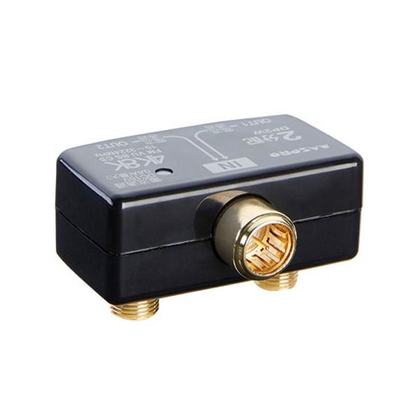 - 【特長】●FM・VHF・UHF・BS・CSの信号を分配します。●OUT端子に電圧(DC15V)が加わるとLEDが光ります。●RoHS対応商品です。【仕様】●メーカー:マスプロ●型番:DP2W-P●商品名:2分配プラグ●家庭用●屋内用●デジタル放送対応(CATV/10〜770MHz・FM・VHF・UHF・BS・CS)●OUT⇔IN 全端子電流通過型●電流容量(A):0.8(DC15V)●インピーダンス(Ω):75(F型端子)●分配損失(dB以下):・10〜76MHz:4.3・76〜222MHz:4・222〜770MHz:4.2・770〜1489MHz:5・1489〜2150MHz:6・2150〜2681MHz:6.5・2681〜3224MHz:7.5●端子間阻止量(dB以上):・10〜76MHz:12・76〜222、222〜770MHz:20・770〜1489、1489〜2150、2150〜2681、2681〜3224MHz:15●電圧定在波比(以下):・10〜76MHz:2・76〜222、222〜770MHz:1.8・770〜1489、1489〜2150、2150〜2681MHz:2・2681〜3224MHz:2.5●使用温度範囲(℃):-20〜+40●サイズ(mm):H30×W53×D39●質量(g):約55【ご注意】※電源供給しない場合、LEDは点灯しませんが、本器の異常ではありません。