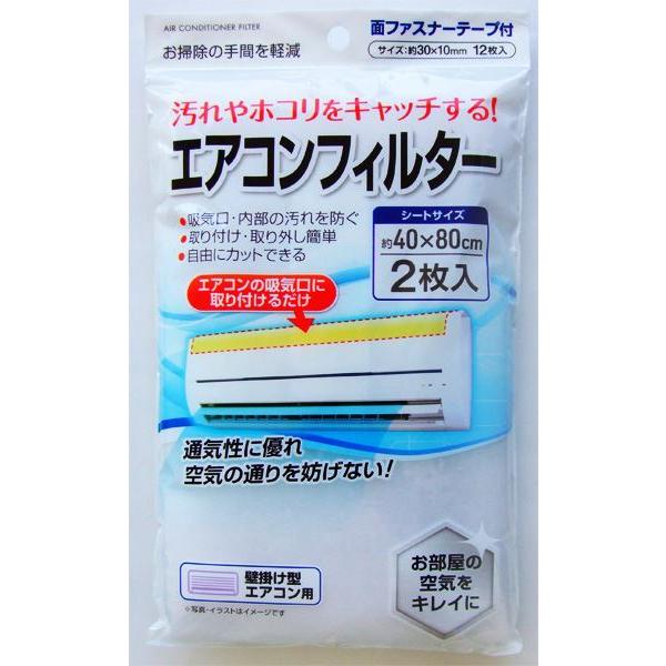 エアコンフィルター 40×80cm 2枚入 面ファスナーテープ12枚付 (100円ショップ 100円均一 100均一 100均)