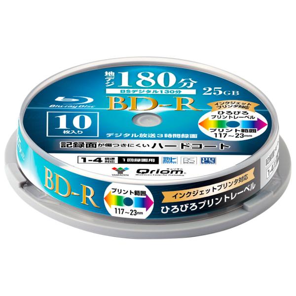 キュリオム 1回録画用BD-R[1-4倍速 / 25GB(180分) / インクジェットプリンター対応 / 10枚] 山善(YAMAZEN) Qriom BD-R10SP 返品種別A