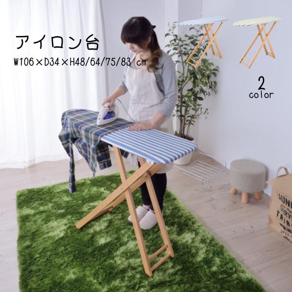 爽やかなストライプ柄のファブリックと木製の脚を採用したアイロン台。