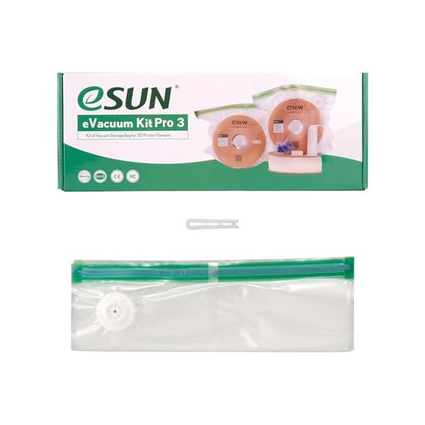・梱包内容eSUN Vacuum Kit Pro 2には、アップグレードされた真空バッグ10、アップグレードされた電動ポンプ1、シーリングクリップ2、変色乾燥剤15が含まれています。キット全体で合計28個の部品が含まれており、10本の使用済みフィラメントを同時に保管することができます。