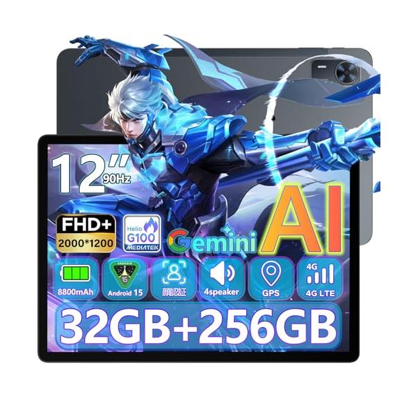 Helio G100 タブレット 1インチ E3+ Android 15 タブレット K FHD+ 大画面 3GB+56GB+B拡張 6軸ジャイ