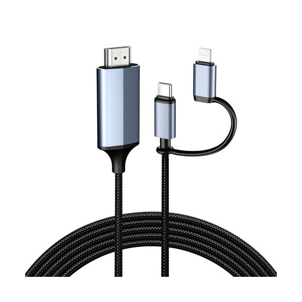 Idoove iphone hdmi変換ケーブル タイプc 2-in-1 Lightning & Type-C HDMIケーブル 2m HDMI
