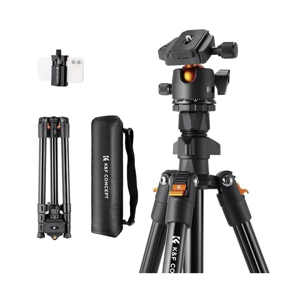 K&F Concept 三脚 一眼レフ カメラ三脚 コンパクト 超軽量 4段 160cm 360度回転 1/4ネジクイックリリース マクロ撮影