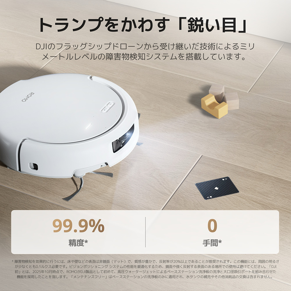 ★3月15日発売★ ロボット掃除機 DJI ROMO S メンテナンスフリー 高い吸引力 25000Pa 障害物検知 水拭き掃除 セルフクリーニング ロモ