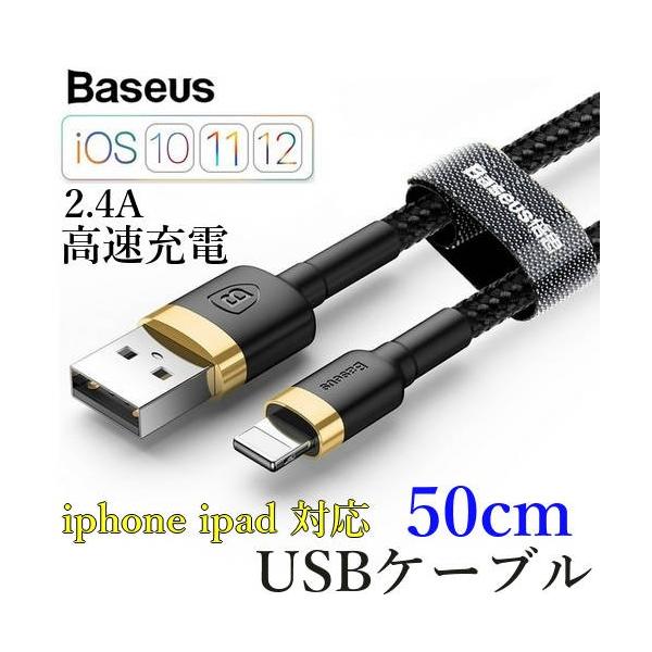 Lightning ケーブル iphone 充電ケーブル データ転送 (50cm) ライトニング ショートケーブル 高速2.4A 最新ios対応 送料無料