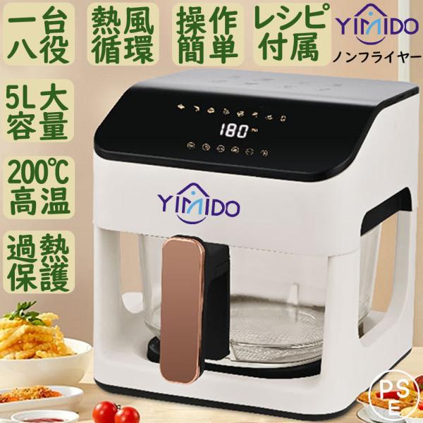 YiMiDO ノンフライヤー 家庭用 大容量5L ノンフライヤー 日本製レシピ 電気フライヤー 一台八役 油なし 揚げ物 360°熱風循環 自動電源オフ 食洗機対応 PSE認証