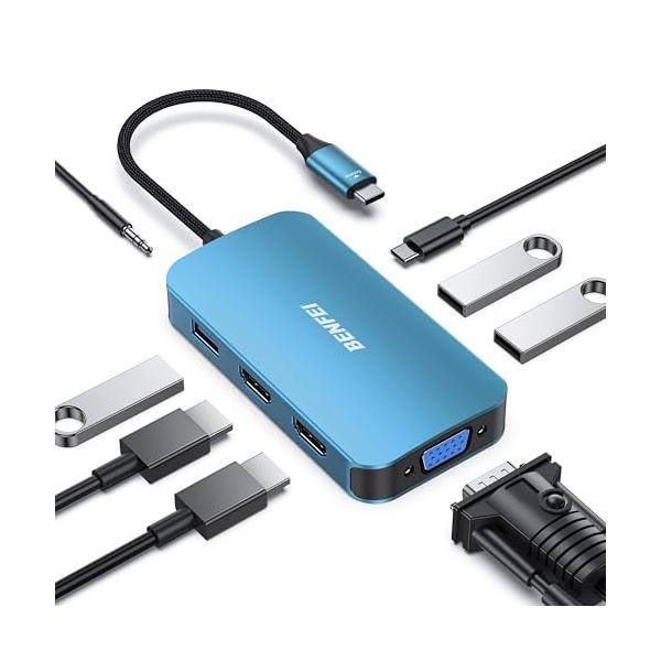 BENFEI USB C 8in1 ハブドッキングステーション Docking station MST 2×HDMI VGA USB-C 3×U