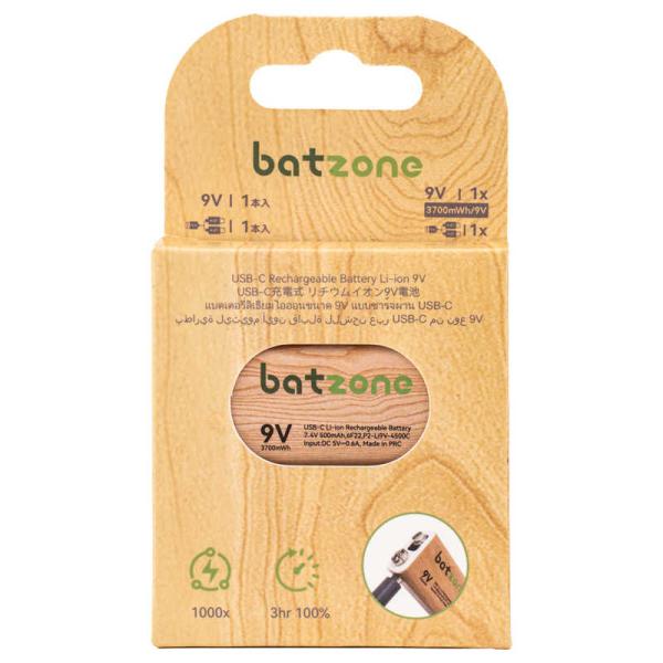 BATZONE batzone リチウムイオン充電池 9V(1本入り) Type-Cケーブル付 P2-LI9V-4500C