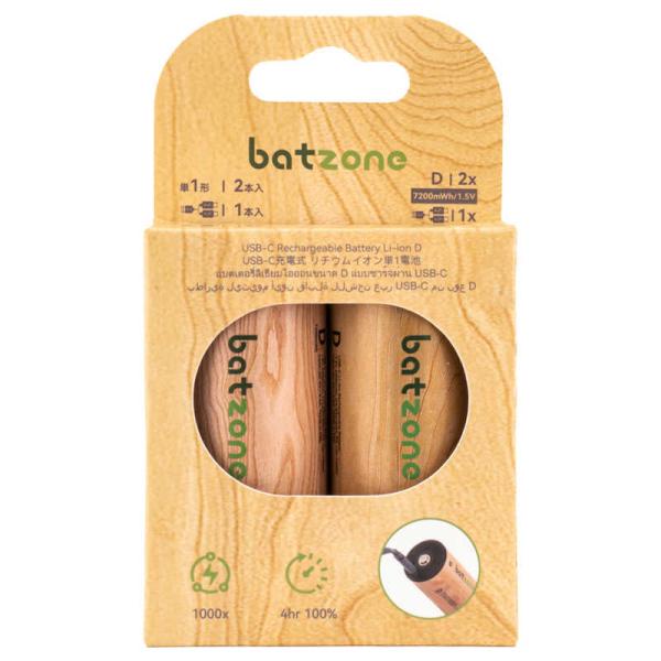 太平洋商事 batzone リチウムイオン充電池 単1(2本入り) Type-Cケーブル付 P2-LID-7400C-2