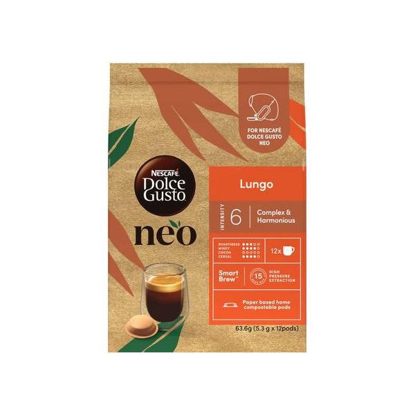 - 【商品説明】「ネスカフェ ドルチェ グスト ネオ ルンゴ」は、複雑ながらもバランスのとれた味わいが詰まったミディアムローストのコーヒーに、濃密なクレマが浮かぶ一杯です。大きめのカップに抽出して、なめらかな口当たりとまろやかなコクをお楽しみください。【仕様】●注文単位:1袋(12杯分) <ジェットプライス>