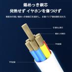 【セキュリティ保護】TPE絶縁材質、、二重保障がより安全で、イヤホンの充電が多い方法。錫めっき銅芯、発熱せず、イヤホンを傷つけず、複数本の粗い錫めっき銅線芯を選択し、多層バリア層保護を加えた。